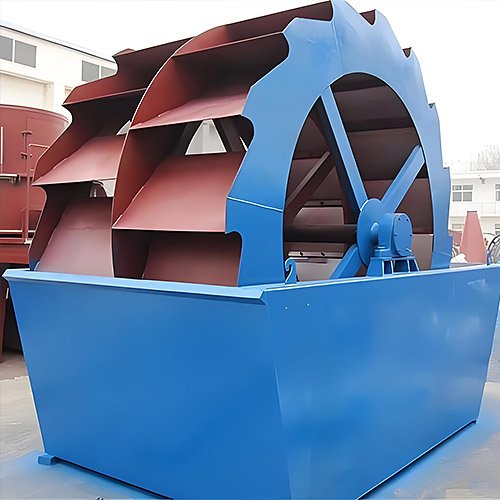 輪式洗砂機(jī)工作時(shí),電機(jī)通過三角帶、減速器、齒輪減速后,帶動(dòng)葉輪緩慢轉(zhuǎn)動(dòng),砂子有給料槽進(jìn)入洗槽內(nèi),在葉輪帶動(dòng)下翻滾,并相互研磨,去除覆蓋砂子表面的雜質(zhì),同時(shí)破壞包覆砂粒的水汽層,以利于脫水;同時(shí)加水,形成強(qiáng)勁的水流,及時(shí)將雜質(zhì)及比重小的異物帶走,并從溢出口洗槽排出,完成清洗作用。清潔的砂子由葉片帶走,砂子從旋轉(zhuǎn)葉輪倒入出料槽,完成對(duì)砂子的清潔作用。
